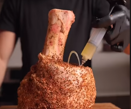 In “Thor’s hammer cooked in fire salt…,” the Meat Guy, born Max Greb, “completely blows up” the cut w/ rendered, injected bone marrow. I don’t know from where the shank originates or what it does when it’s part of something living. The freshest meat I’ve seen comes on a styrofoam tray. The Meat Guy buries this cut in salt binded w/ whiskey. He makes tacos w/ it.